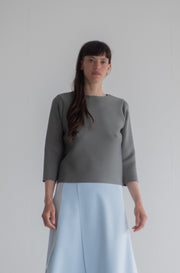Long sleeves top in silken light grey neoprene. Soft touch on the skin.