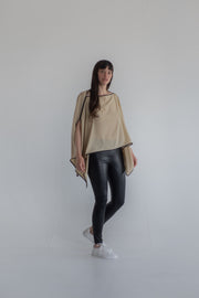 Versatile beige silk top, with open splits for head and arms. Wearable as top or scarf.