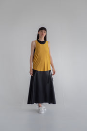 Sleeveless two layers top. Black top in stretch lycra with an golden stretch lycra overlay.