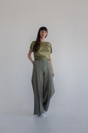 hidden elastic waistband, 2 side pockets, front stitching for a refined look